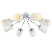 Элегантная люстра Conso соединяет в себе изысканный прованс и аристократичность. В дизайне потолочного светильника использованы восемь изящных тканевых абажуров, дающих мягкое рассеянное свечение, и утонченный декор арматуры цвета латунь. Основания плафонов украшают вставки из прозрачного стекла. В модели используются сменные лампы с цоколем E14. Классический потолочный светильник Conso не только наполнит пространство светом, но добавит в интерьер умеренную торжественность.